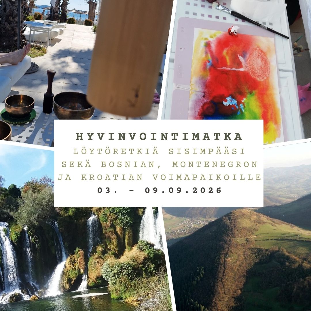 Onko aika pysähtyä? Ottaa aikaa itsellesi, olla hetken vapaa arjestasi, tekoälyn teknisestä tykityksestä, jatkuvasta tietotulvasta, vastuiden valtateistäsi tai rutiiniradoistasi? Onko aika kuunnella lempeästi kehoasi, sisäisiä tarpeitasi, todellisia tunteitasi? Kuten tasapainossa olevaa sisintäsi, voimavärejäsi, voimauttavaa omaa ääntäsi ja rauhoittavaa sisäistä sointiasi? Tällä ohjatulla matkalla sinulla on mahdollisuus pysähtyä oman elämäsi äärelle, ottaa aikaa itsellesi, herätellä kehoasi lempeillä liikkeillä, heittäytyä luovuuden rajattomalle rannalle kuunnellen oman äänesi säveliä, maalaustuokioissa ilmentää näkyväksi sielusi väripalettia sekä rentoutua ja rauhoittua äänimaljojen ja eri soittimien hoitavissa soinnuissa. Mitään ennakko osaamista näihin ei tarvita 😊. Lisäksi tätä sisäistä matkaamme elävöittää retkemme ainutlaatuisiin, voimallisiin ja energiapitoisiin luonto- ja kaupunkikohteisiin. Mikä näistä valikoiduista kohteistamme kutsuu erityisesti Sinua? Luonto ja vesielementit, voimalliset puhdistavat putoukset vai Adrianmeren suolaiset aallot Montenegrossa? Historian havinasta kertovat Bosnian pyramidit vai arvoitukselliset jättimäiset pyöreät kivipallot vai piipahdus Unescon maailmanperintökohteissa Mostarissa tai Dubrovnikin vanhassa kaupungissa Kroatiassa? Vai nämä kaikkiko?
